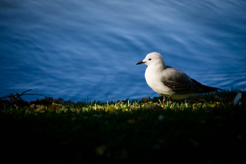 Monday, January 5th, 2009A juvenile seagull hunkers down to begin a preening regime on the shoreline of Lake Monger. Many young seagulls are following their parents around this time of the year learning how to trick your mate out of a chip and the best angle of inclination with which to dive bomb a car windscreen. They make such a quiet squeak; quite in contrast to their older, surlier brethren.