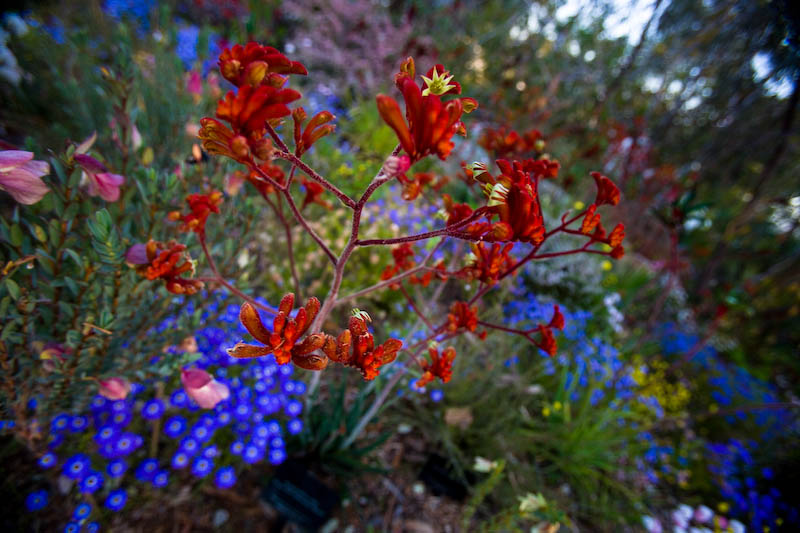 Friday, January 9th, 2009The deliciously Western Australia Kangaroo Paw commands the centre of attention in a sea of planted colour in one of the Kings Park’s wildflower gardens.