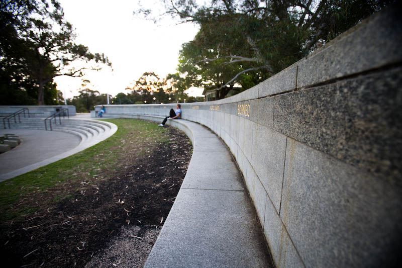Wednesday, January 7th, 2009One of the beautiful things about Kings Park is the wide open spaces nestled in the 400+ hectares of land. On the fringes of many of the parks they have some excellent places to sit and wile away an afternoon. There’s also usually some nice artwork to boot.