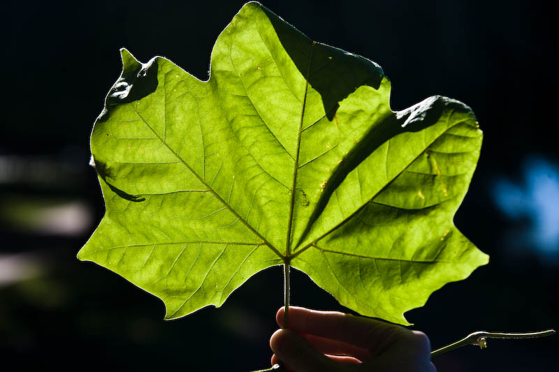Thursday, January 1st, 2009A single detached Plane Tree leaf is held aloft on the shores of Lake Monger in late afternoon sun.