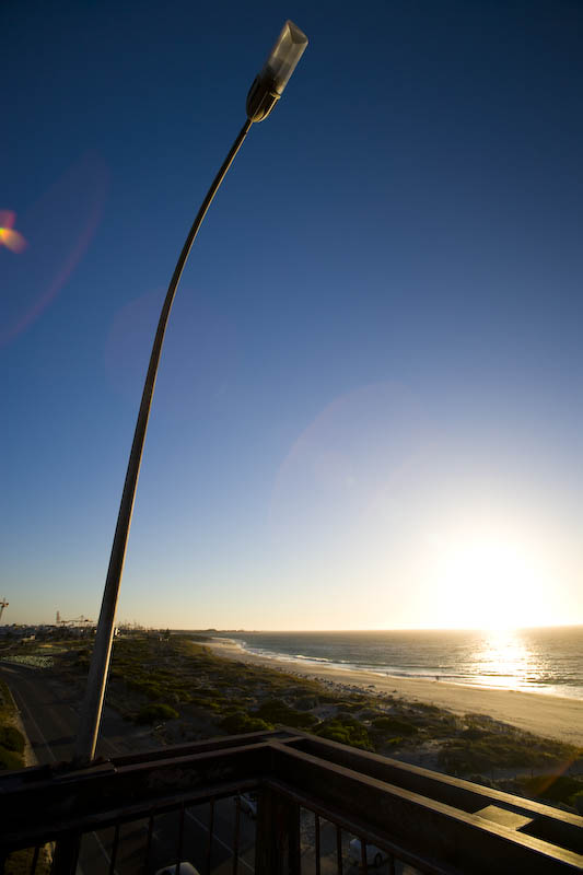 Wednesday, January 21st, 2009The corner of the Leighton Beach footbridge is a wonderful vantage point to admire an ever retreating sun. The wind generally whips up the coast towards the camera’s vantage point and while blustery, is often very refreshing after a long hot summer day.