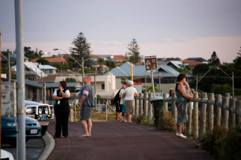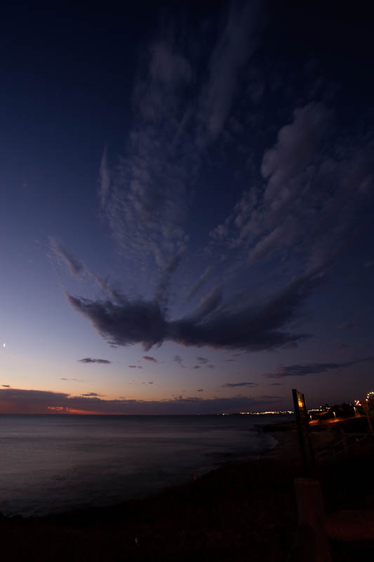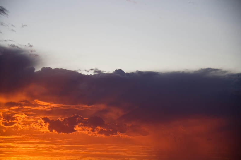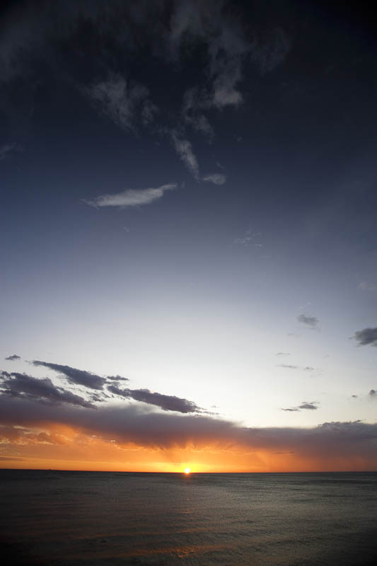 The fiery sunset and a small cloud of rain play off each other below clear skies west of North Beach, Perth.