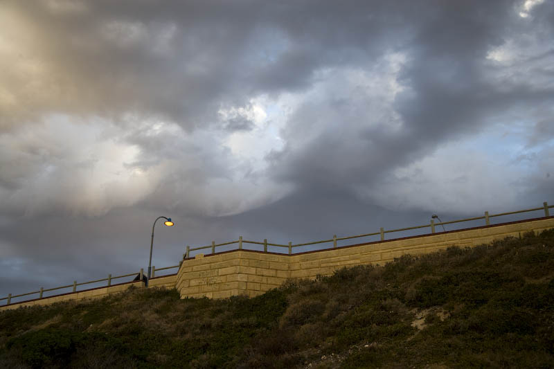 A sullen afternoon looking up from Bennion Beach towards the street.