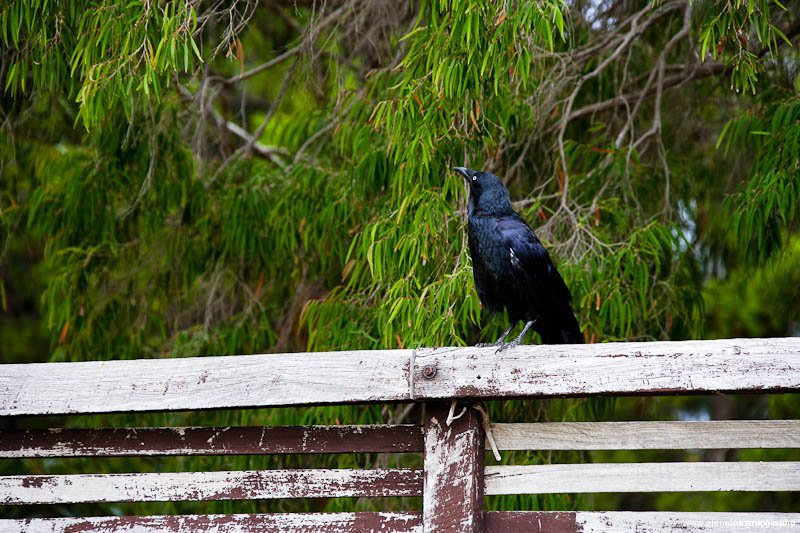 Sunday, October 18th, 2009Harking back to a similar image, this one takes in a more expansive view including the very strong late summer’s afternoon sunlight as seen from the pedestrian bridge across the rail yard at Leighton Beach.